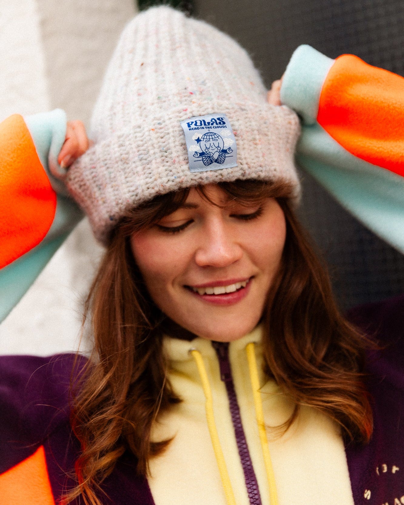 Features a unique jacquard label designed by @viktoriagorko with the slogan: "HEAD IN THE CLOUDS."