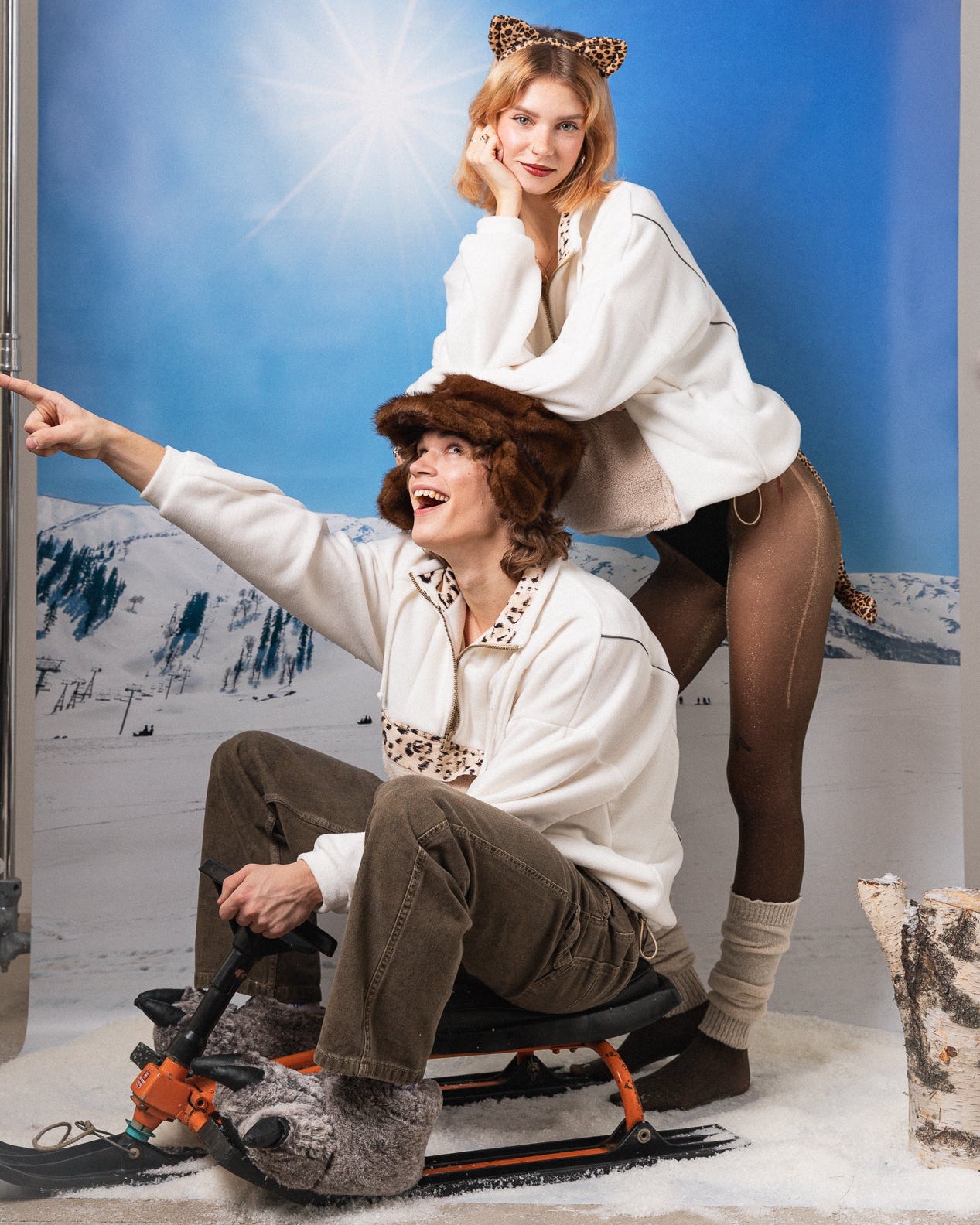 Ania is wearing size S/M, and Adrian is wearing L/XL.
