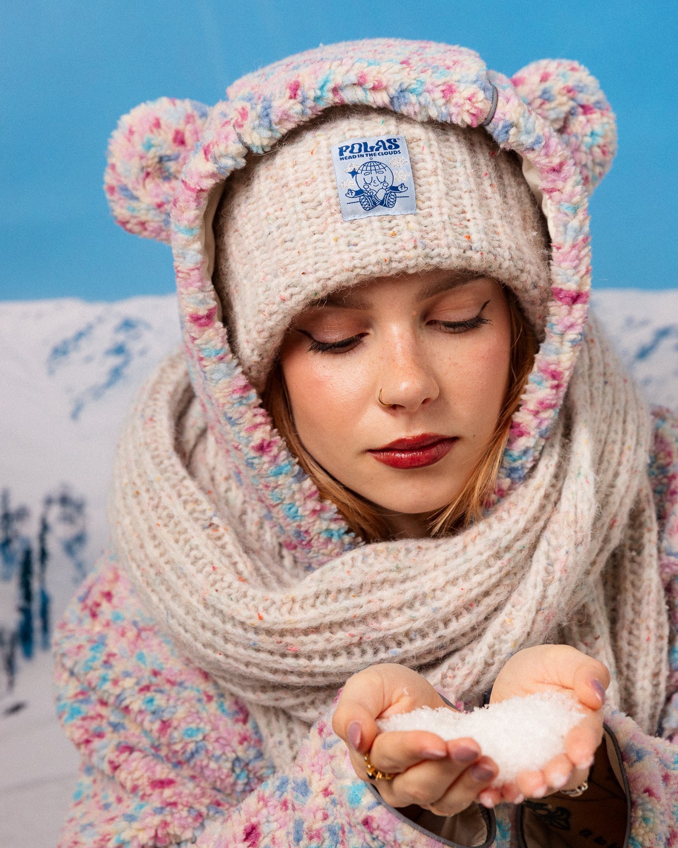 Czapa HEAD IN THE CLOUDS z tęczowymi niteczkami - przytulny basic. Dla tych, co chodzą z głową w chmurach ☁️🌈… i dla tych, co to muszą ich czasem mocno przywrócić na ziemię.